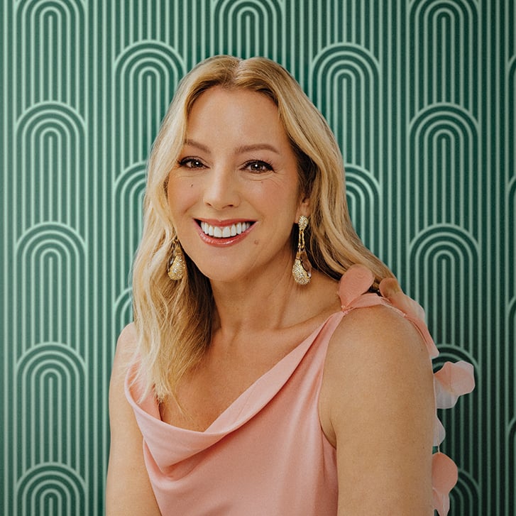 Photo: Tanya Goehring. Wallpaper: Otto Studio. Styling: Kristin Morawski. Clothing: Holt Renfrew (Dress: Cult Gaia; Earrings: Alexis Bittar; Ring: Swarovski)