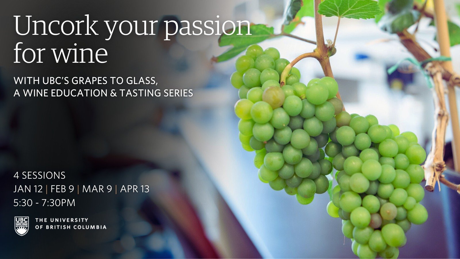 Grapes to Glass is a four-session Wine Education and Tasting Series. You will use your senses as you learn about the important elements of wine production, from grape-growing to enjoying the finished product, with a special focus on B.C. wines. Over the course of these sessions, you will taste over a dozen unique wines and tour the UBC Wine Library – home to more than 4,000 unique bottles of wine.
