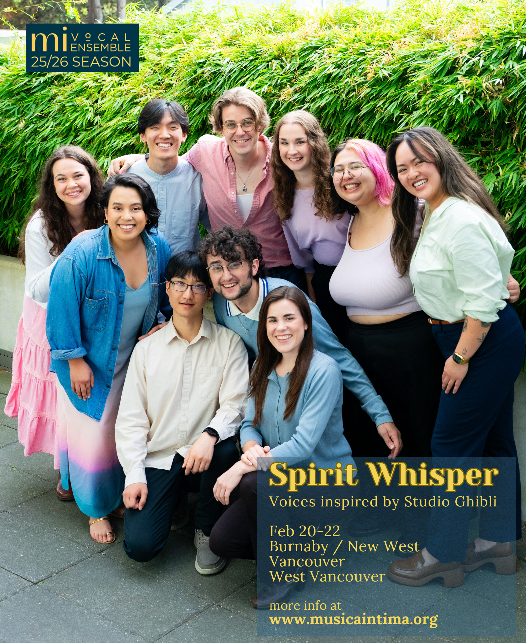 Step into a world of wonder with Spirit Whisper, musica intima’s newest choral experience inspired by the enchanting films of Studio Ghibli. Featuring music by Joe Hisaishi and other beloved composers, Spirit Whisper celebrates an international cultural phenomenon that has captured the hearts and imaginations of audiences of all ages around the world.