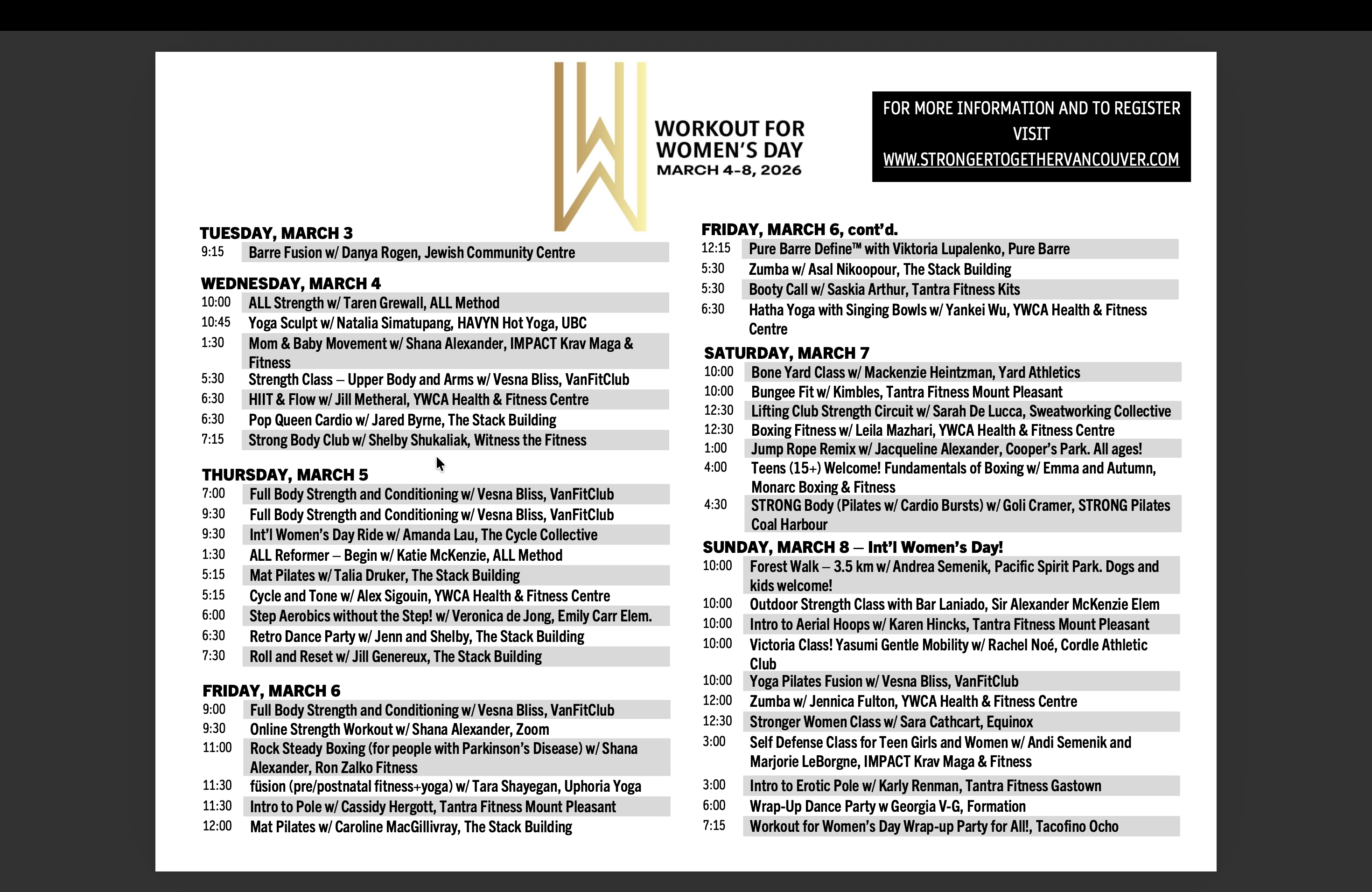 All registration and donation information can be found at: www.strongertogethervancouver.com